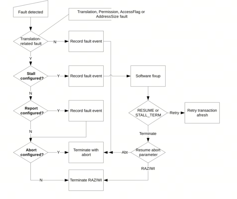 SMMU检测到Fault时的处理流程如下图所示。