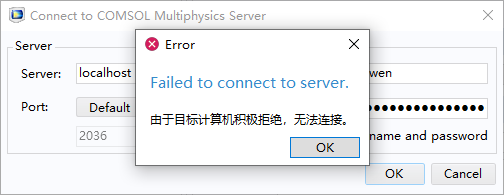 最近用comsol,打开matlab, 然后connect comsol server to matlab,总是弹出如下错误提示: