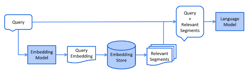 此过程可能因所使用的信息检索方法而异。对于向量搜索,这通常涉及嵌入用户的查询(question)以及在嵌入存储中执行相似性搜索。 然后将相关句段(原始文档的片段)注入到提示中并发送到LLM。