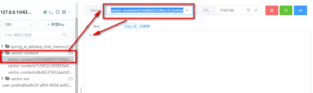 // String redisKey = "vector-xxx:" + textHash;String redisKey = "vector-content:" + contentHash;// 判断是否存入过,redisKey如果可以成功插入表示以前没有过,可以加入向量数据