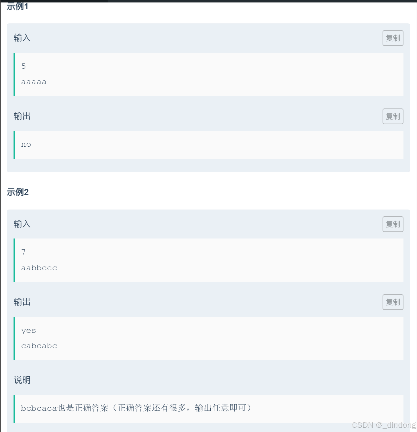 优先处理出现次数最多的那个,每隔一个位置放一个,x<=(n+1)/2才可以排,否则直接cout<<"no"