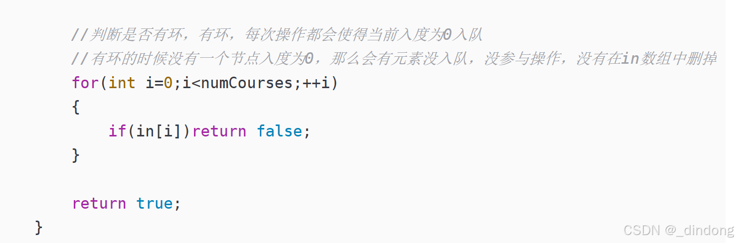 最后return检查是不是还有入度为0的点,如果有就是有环,该题的话就是返回-1