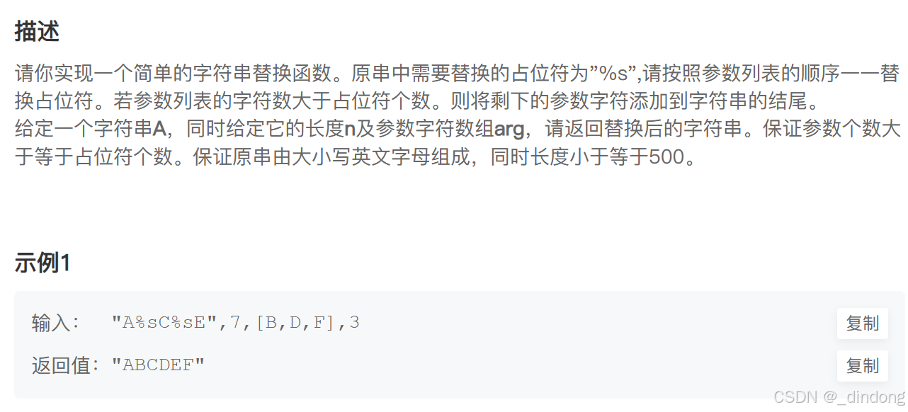 public:string formatString(string str, vector<char>& arg) {string ret;int cur1=0,cur2=0;while(cur1<str.size()){if(isalpha(str[cur1])){ret+=str[cur1++];}else {ret+=arg[cur2++];cur1+=2;}}while(cur2<arg.size())ret+=arg[cur2++];return ret;}