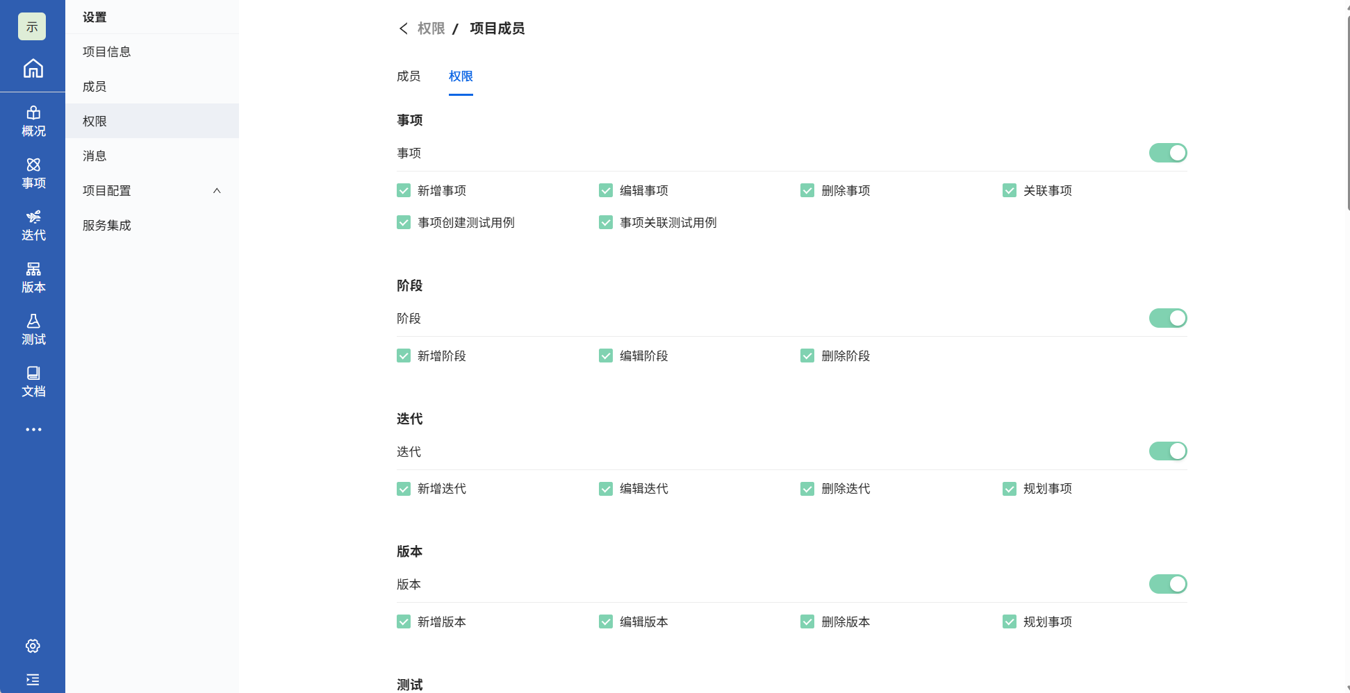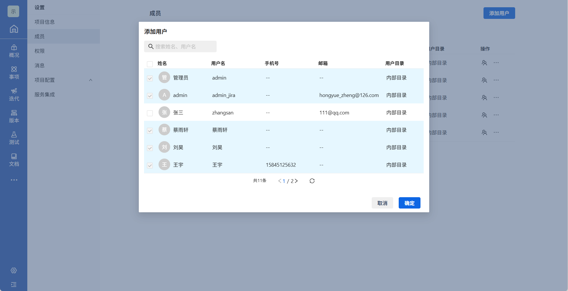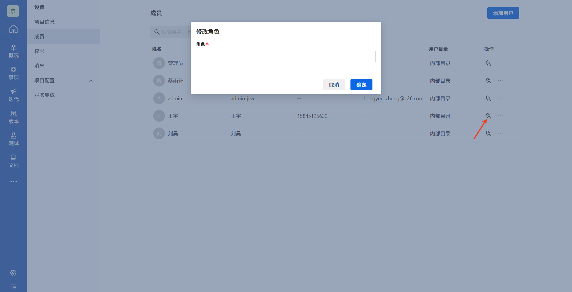系统成员添加成功后,进入项目->项目设置->成员,添加用户。