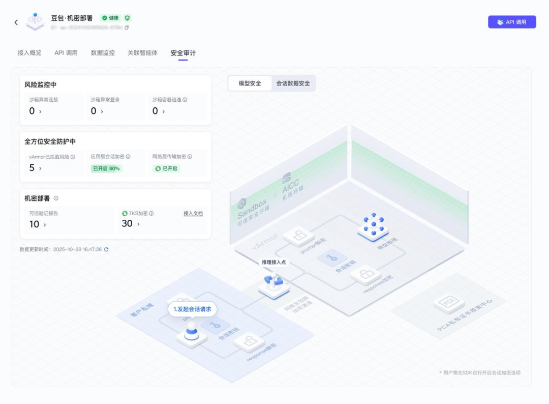 该功能让用户在火山方舟可使用芯片级的机密推理服务,让企业隐私数据在云端获得与本地同等安全的计算保障,确保企业在火山方舟的数据“唯用户可见、唯用户所用、唯用户所有”。