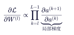 神经网络通过反向传播更新参数。对于一个 L 层网络,第 l 层的梯度大致为: