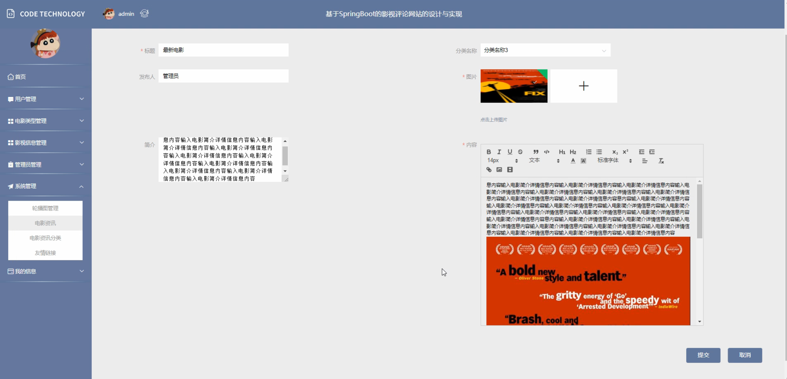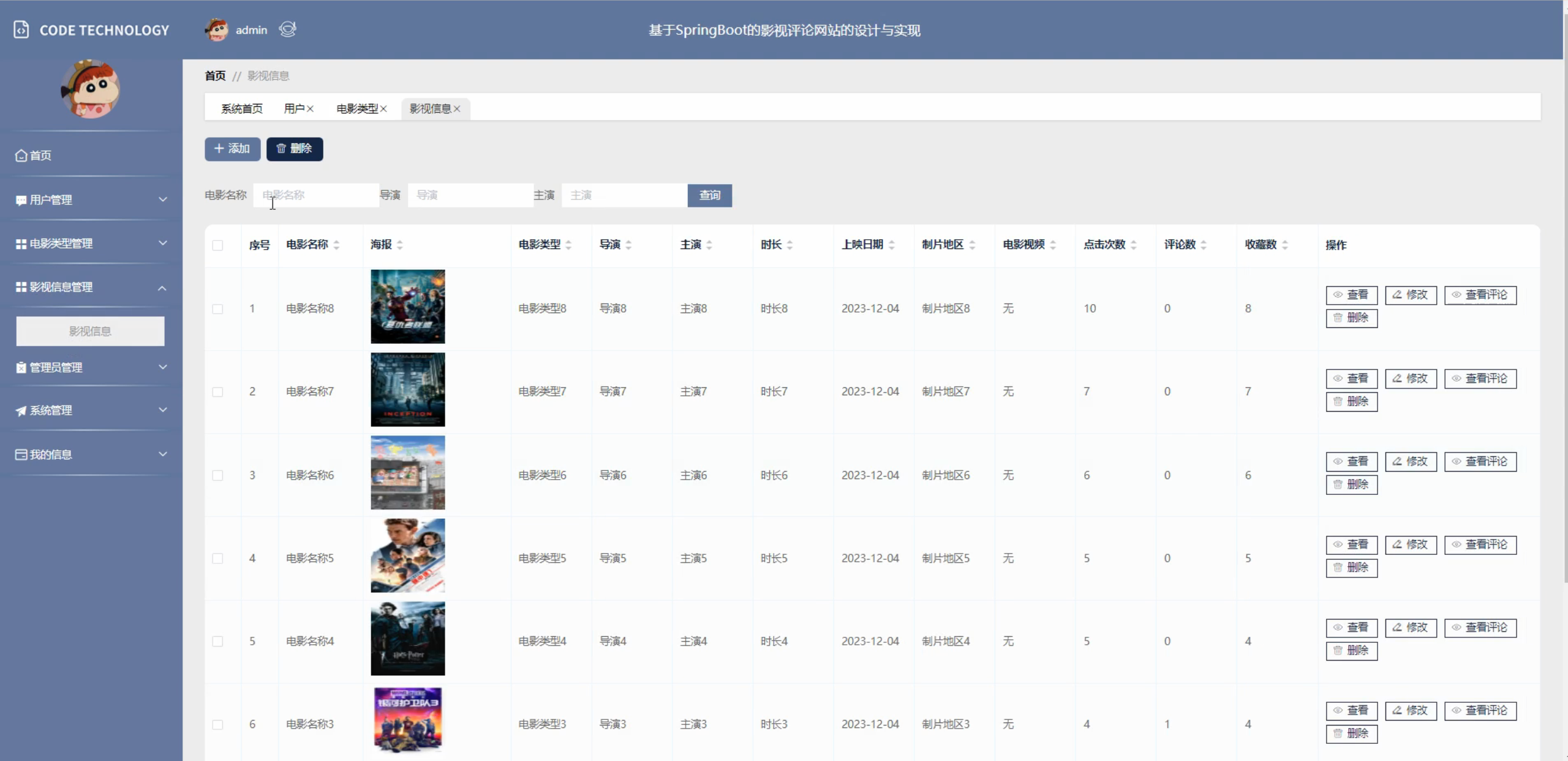 基于Springboot的影视评论网站的设计与实现58py6238(程序、源码、数据库、调试部署方案及开发环境)系统界面展示及获取方式置于文档末尾,可供参考。