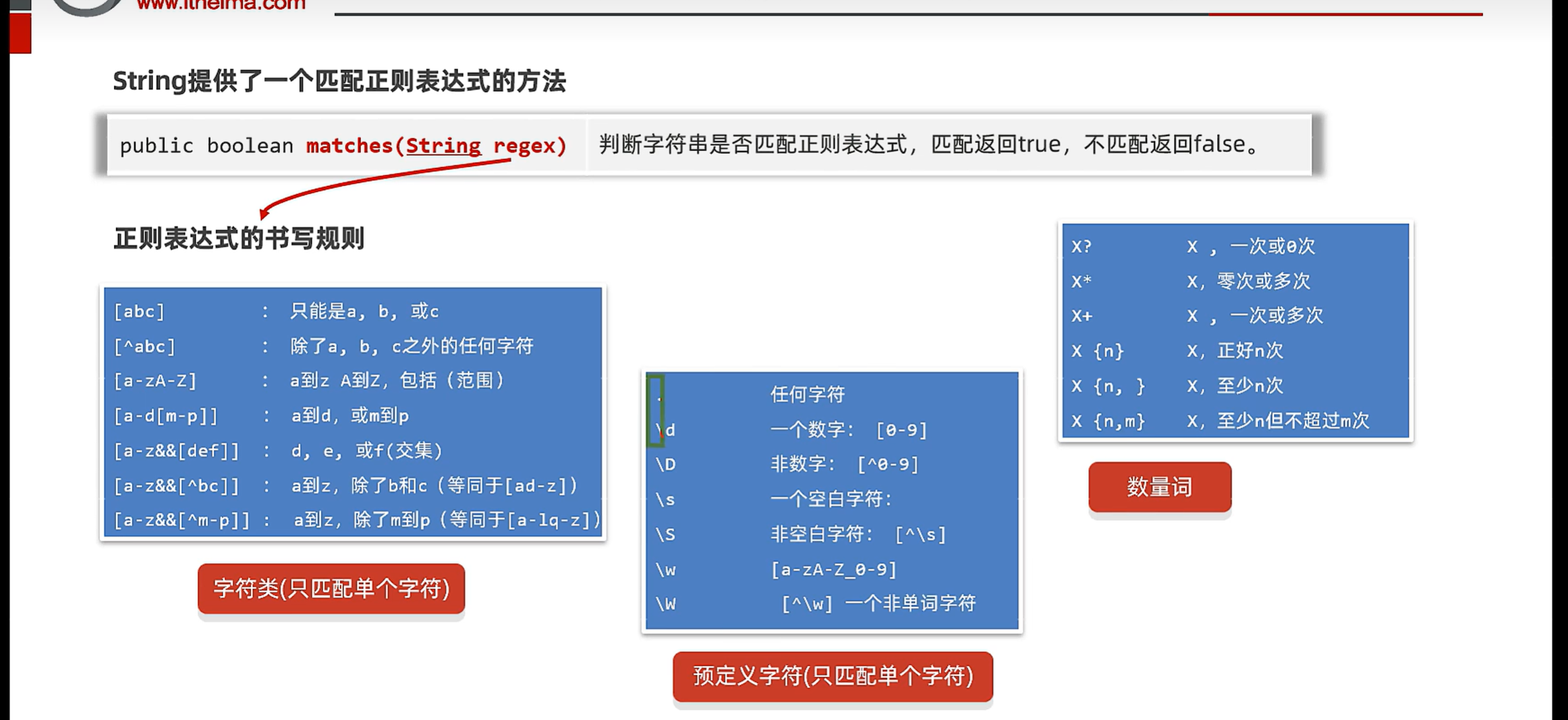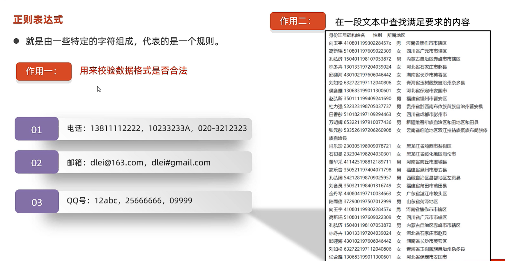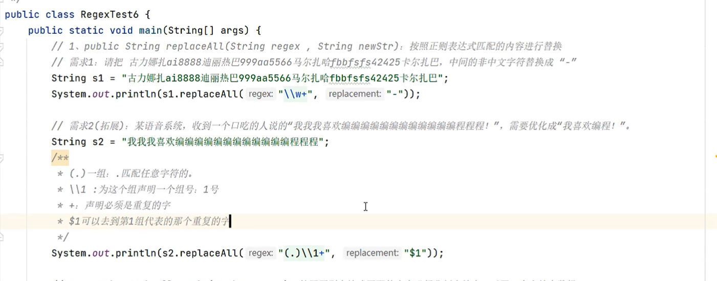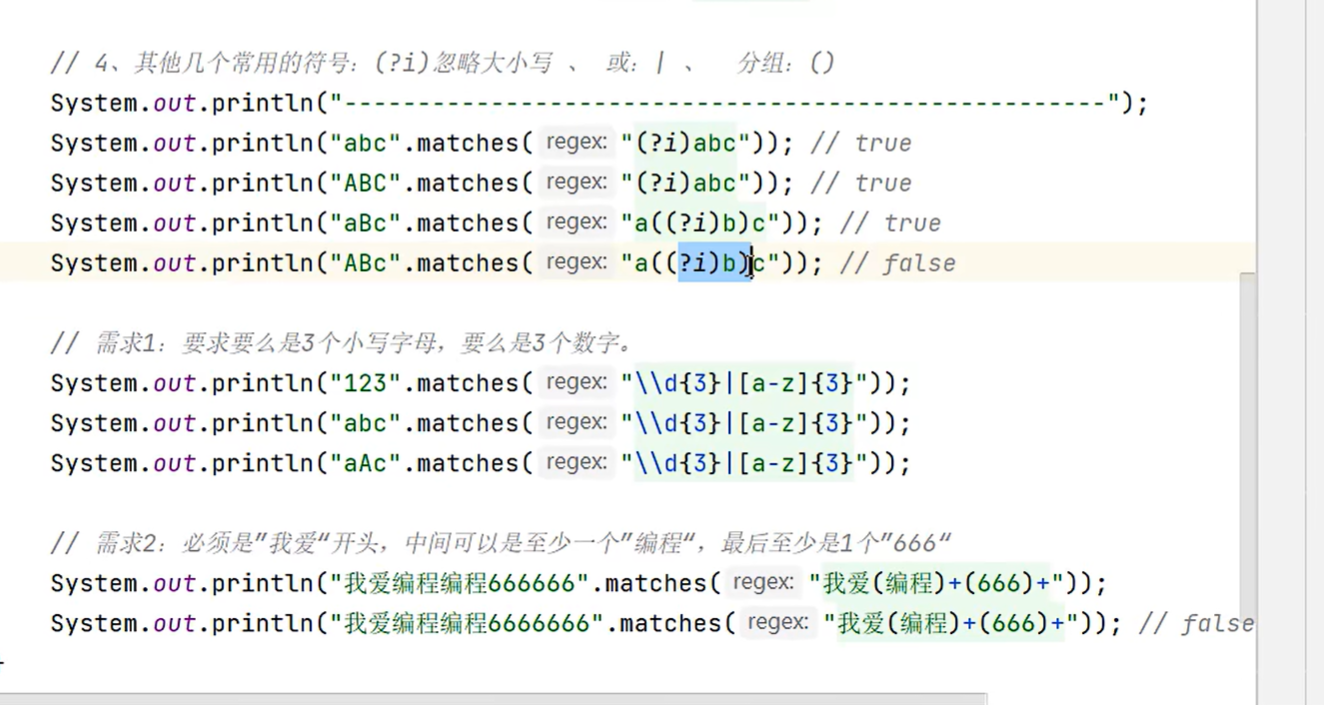public static void checkEmail(String mail){System.out.println("请输入你的电话邮箱");Scanner scanner = new Scanner(System.in);String mailnum = scanner.nextLine();//dsadasdasd@qq.com dashjdasdjh@qq.com.cnif(mailnum.matches("\\w{2,}@\\w{2,20}(\\.\\w{2,10}){1,2}")){System.out.println("您输入的邮箱格式正确");}else{System.out.println("您输入的邮箱格式不正确");}}7.5 正则表达式在一段内容中爬取信息