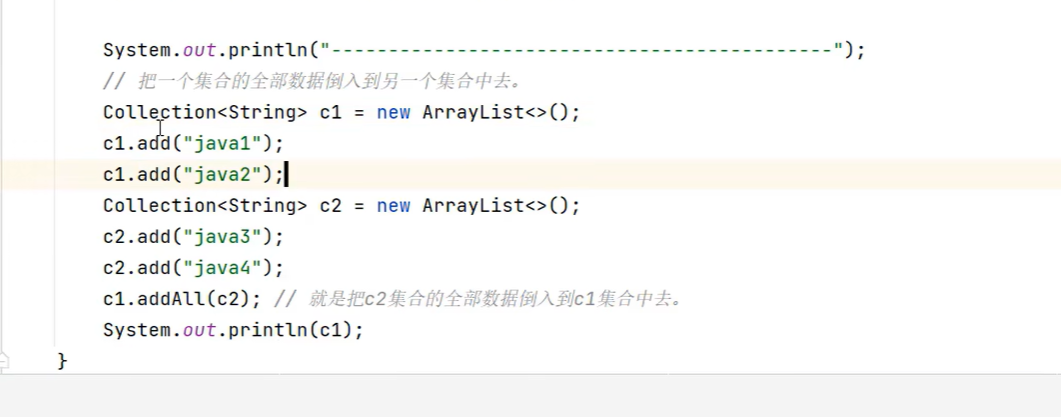 addAll方法可以把一个集合的数据倒入到另一个之中去