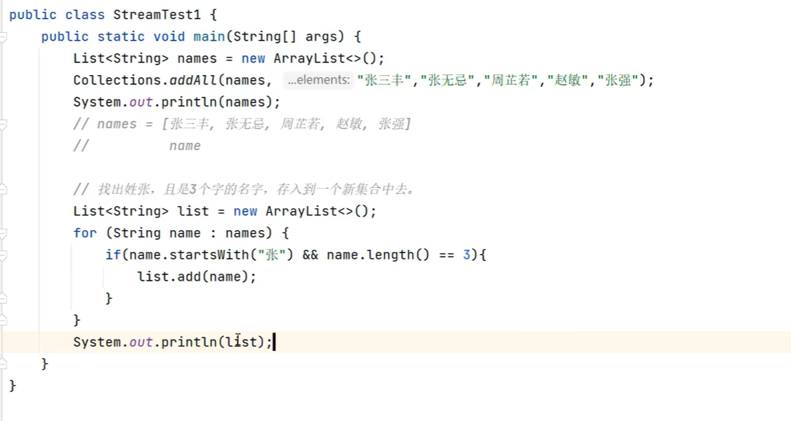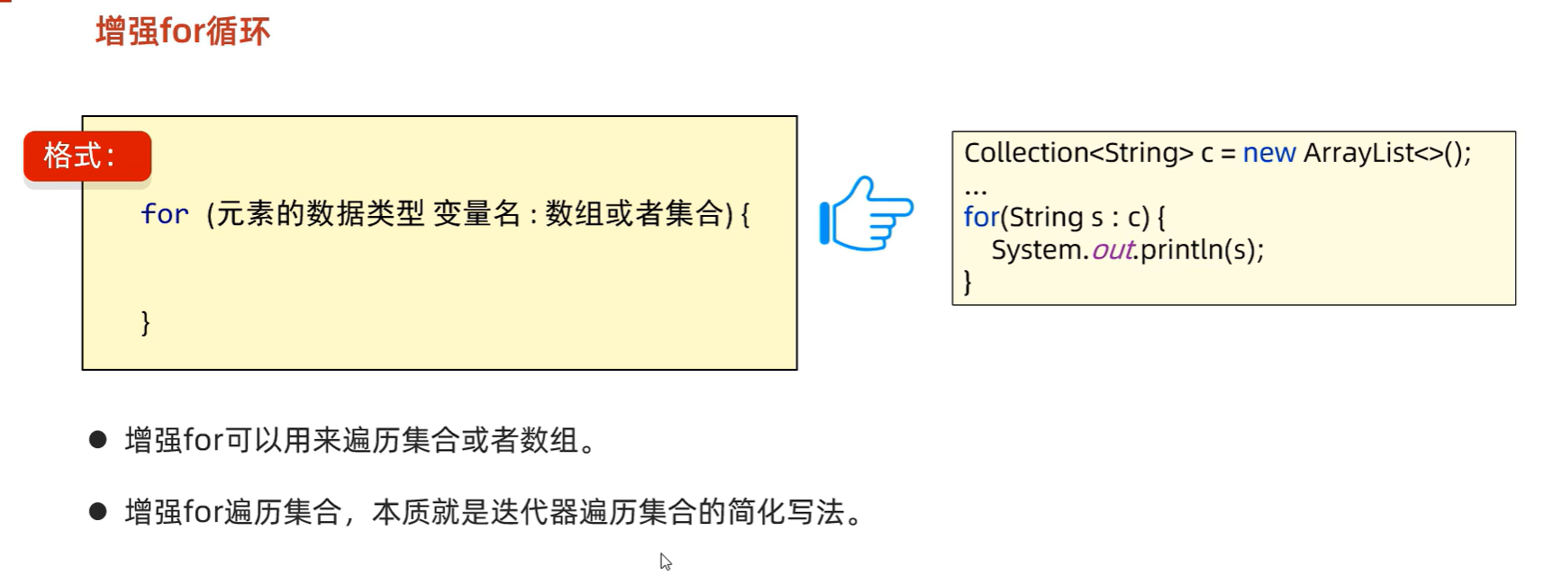 //增加for循环既可以遍历数组又可以遍历集合for(String s : c){System.out.println(s);}}