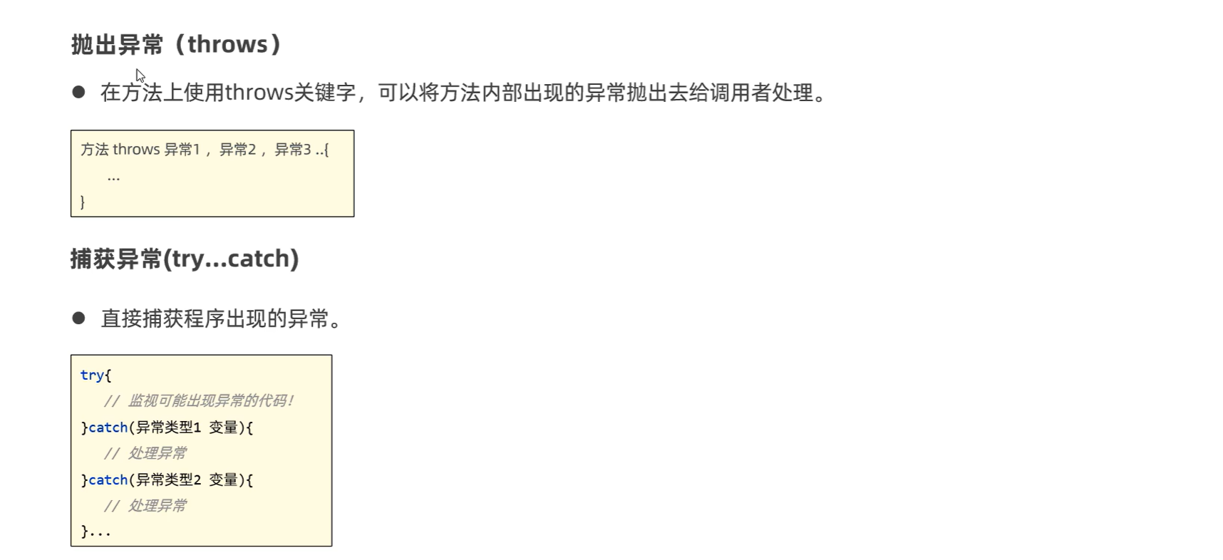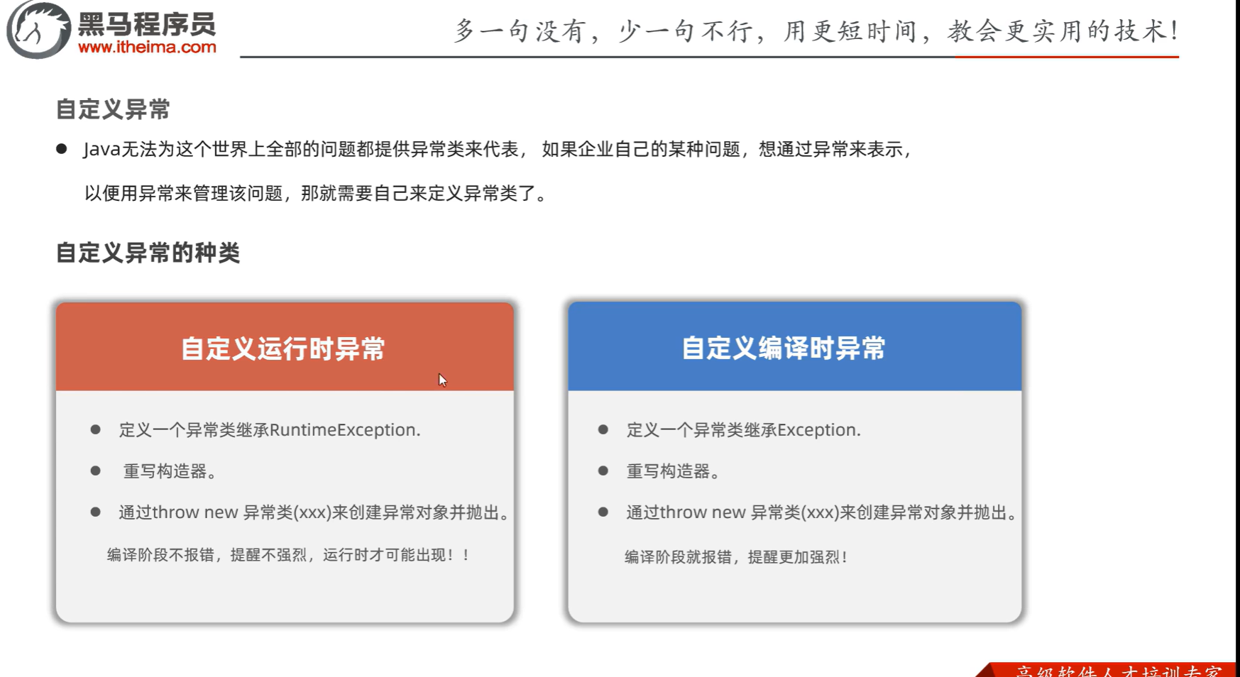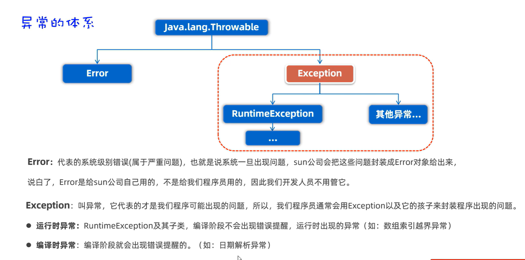 其实差不多的,只是更强烈,要求你一定去处理一下,你可以往上抛,方法+throws+ 这个异常