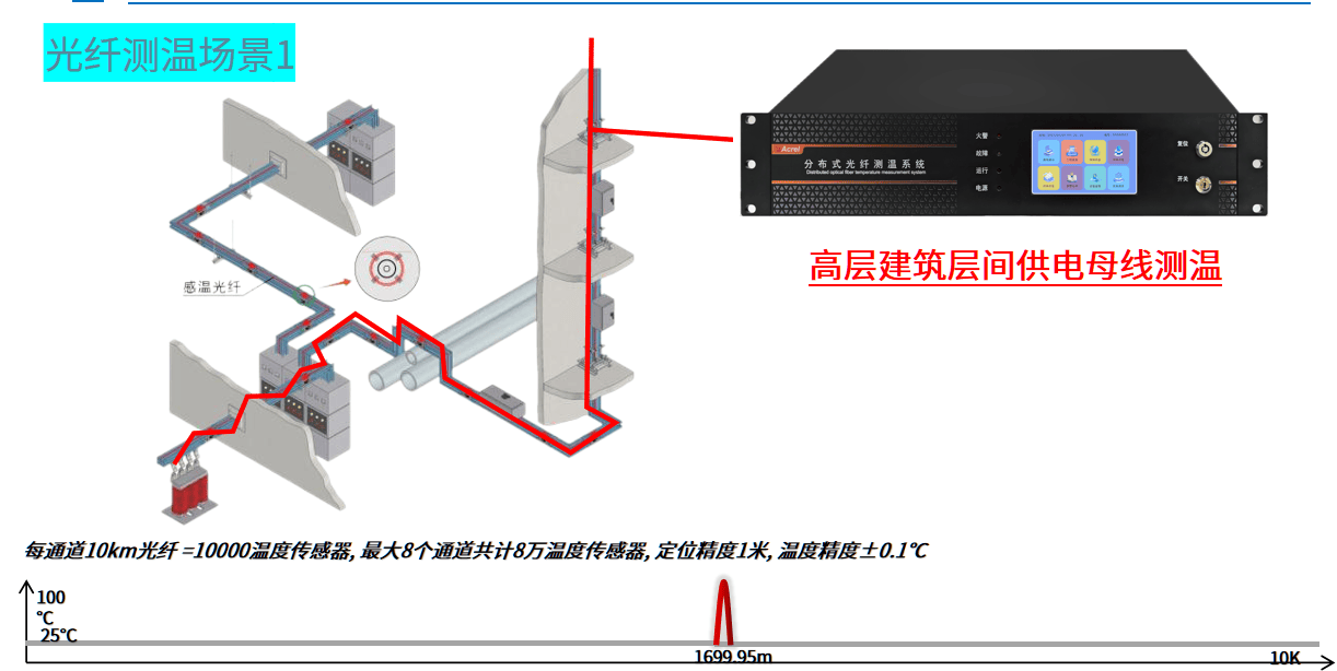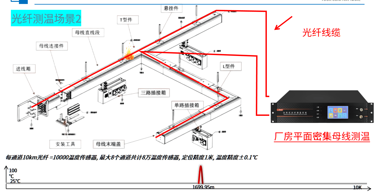 - → 1根光纤覆盖10km母线(≈1万个测温点),精度0.1℃(医院手术室必选)