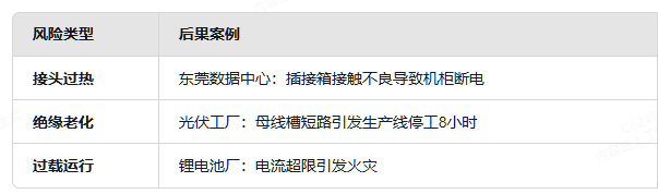 - 问题:母线槽连接点松动可能烧毁,维修停工损失巨大(如锂电池工厂停产1小时损失百万)。