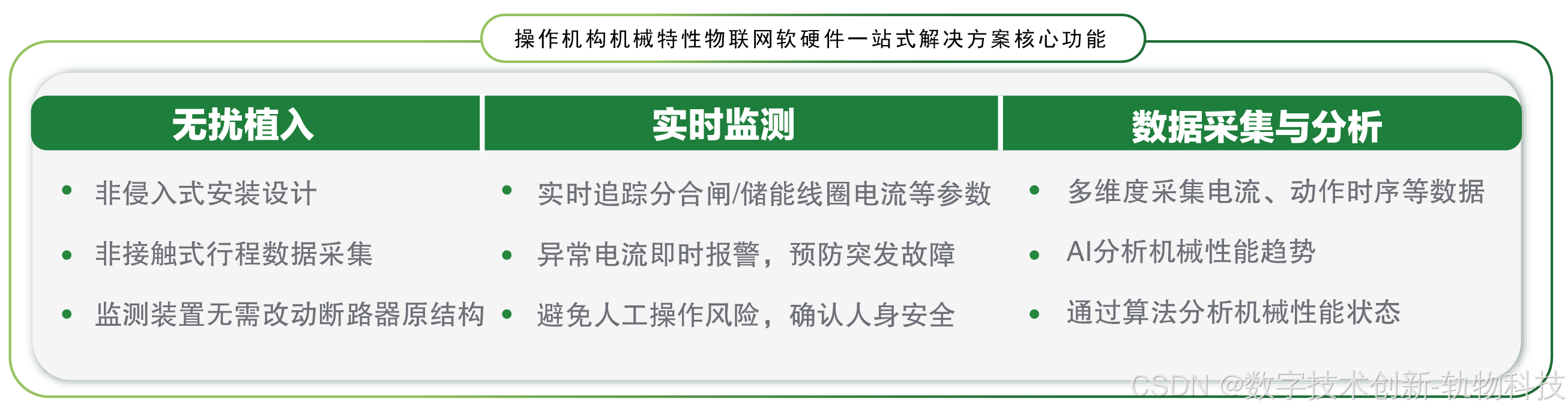 在工业4.0浪潮席卷全球的今天,制造业企业的数智化转型已非选择题,而是生存发展的必答题。作为深耕物联网与人工智能领域十余年的创新先锋,轨物科技(ThingCom)自2010年成立以来,始终以“产学研用”闭环加速创新成果转化为核心驱动力,致力于为制造业企业提供全方位的智慧运维解决方案。今天,我们聚焦工业领域的关键部件——操作机构,正式推出操作机构机械特性物联网软硬件一站式解决方案,旨在全程赋能企业技术创新与产品升级,让智能化转型之路更简单、更高效、更成功。