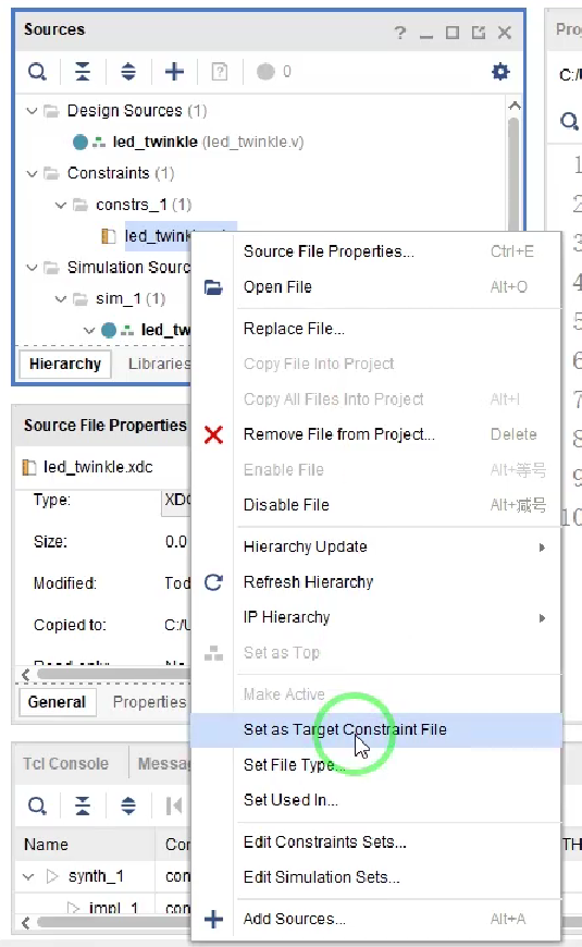 此时文件并没有target的字样,就证明该文件当前还不是工程的目标约束文件
