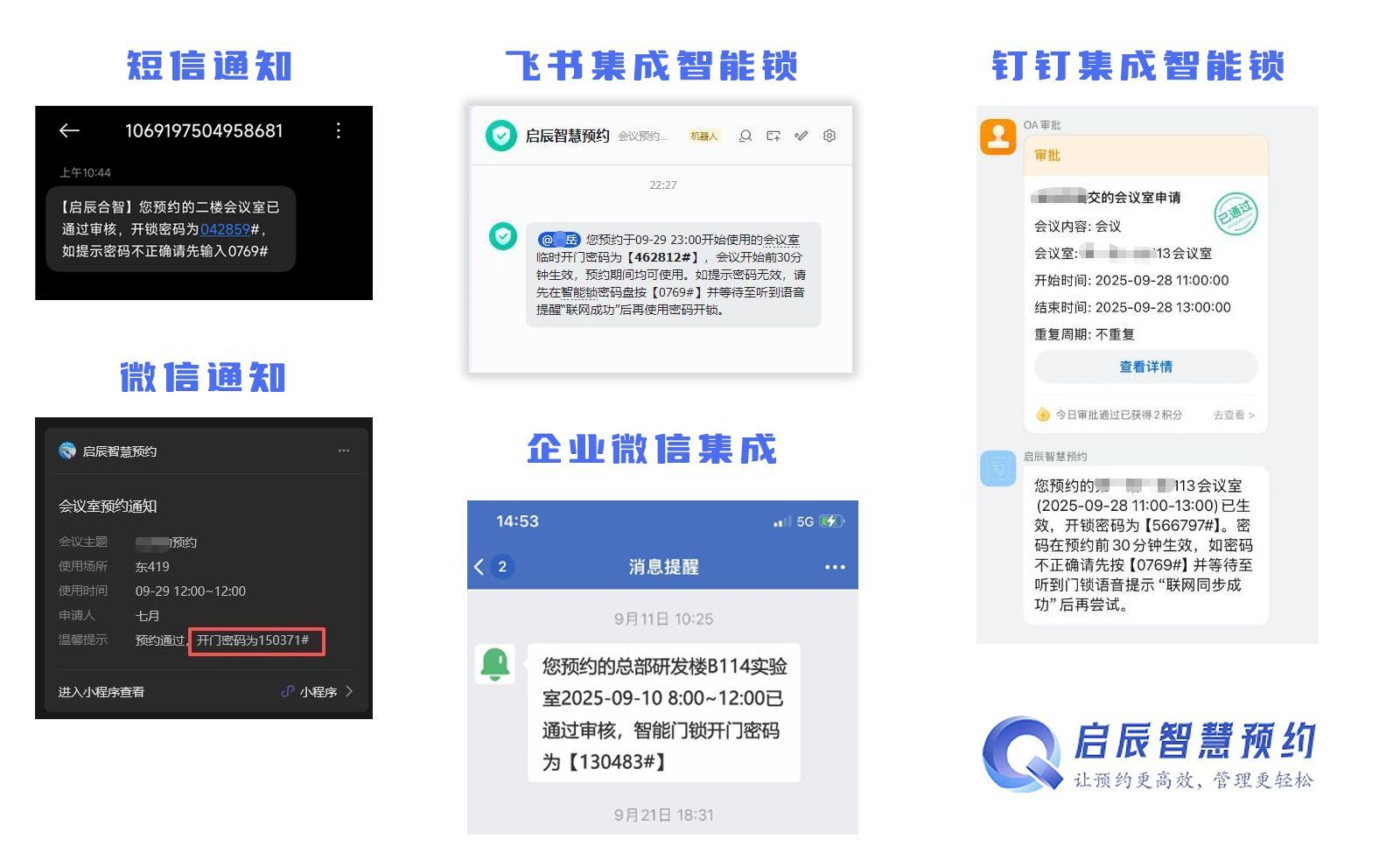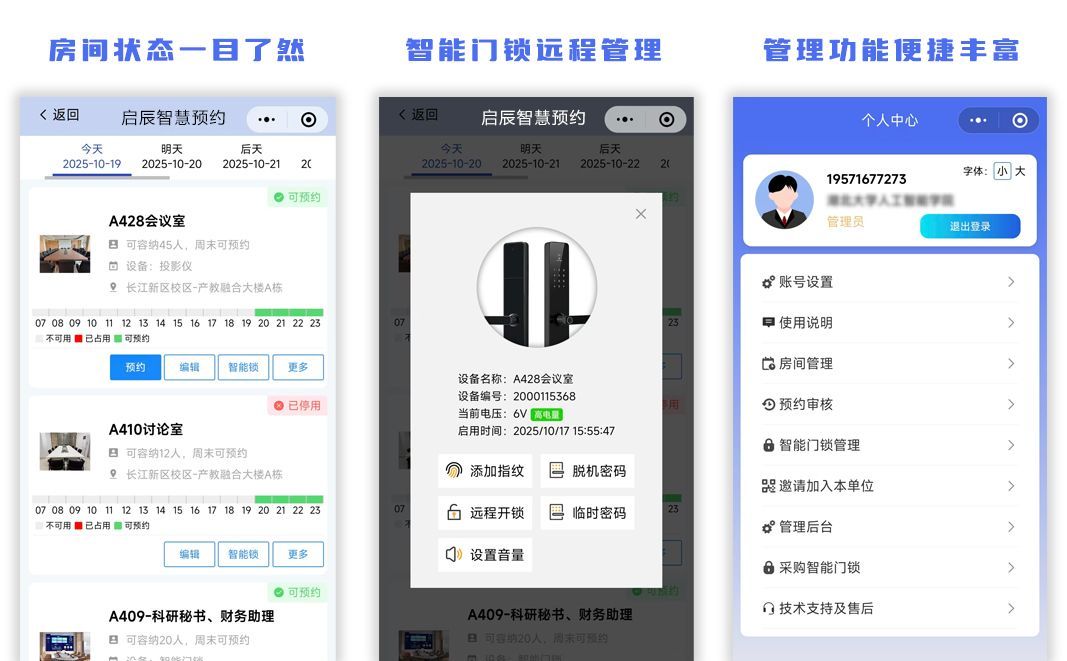 更亮眼的是,这把锁能无缝接入启辰会议预约小程序及钉钉、飞书、企业微信等主流办公APP。