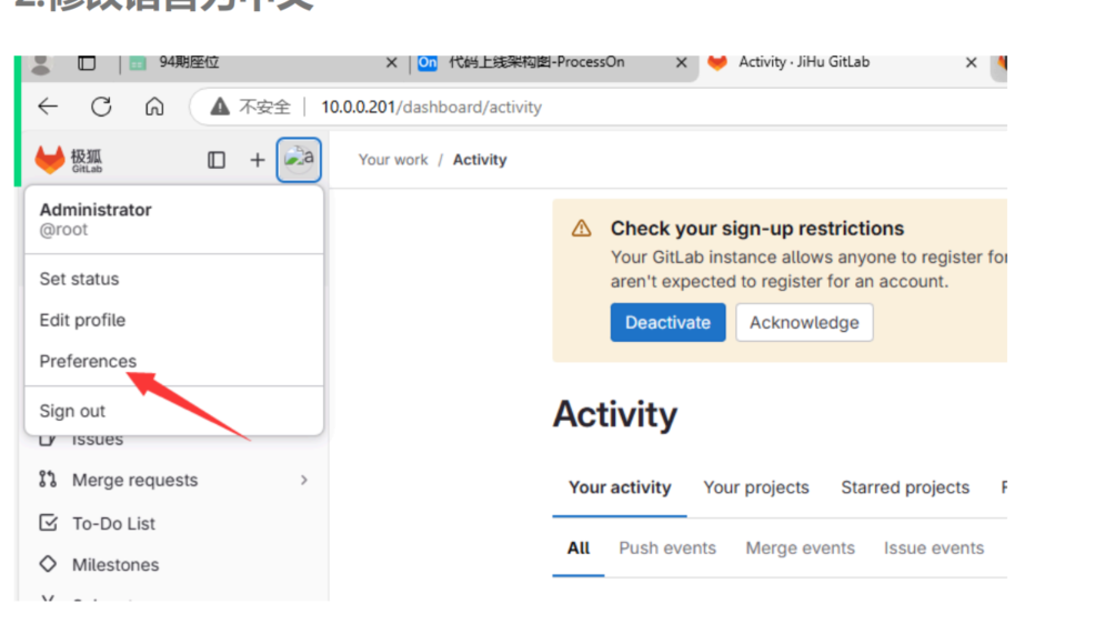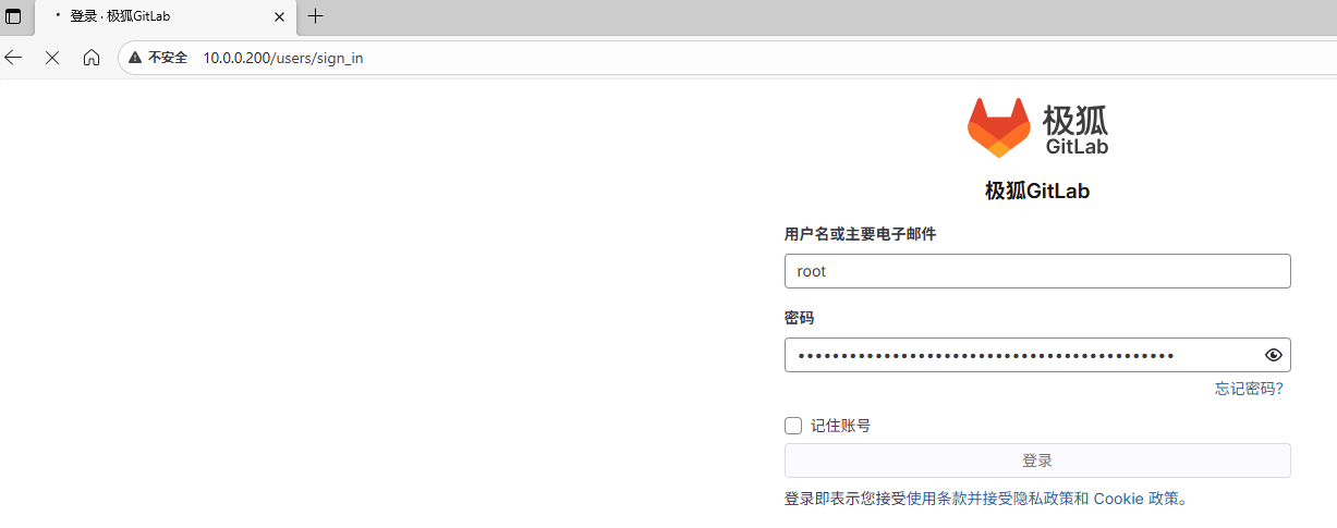 root@ubuntu:~# gitlab-ctl start # 启动gitlab服务安装完成后访问10.0.0.200