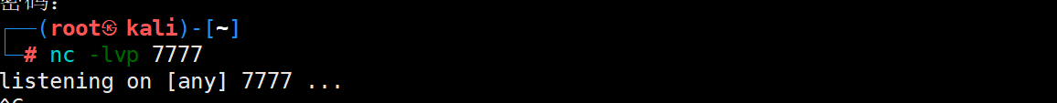 启动第二个kali终端,接收来自目标系统的连接,等待目标服务器主动连接回来(反向 Shell)