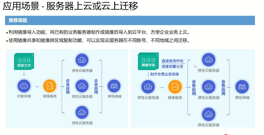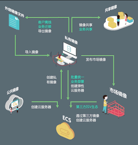 镜像:创建服务器或磁盘的模板,包含操作系统、业务数据或应用软件。