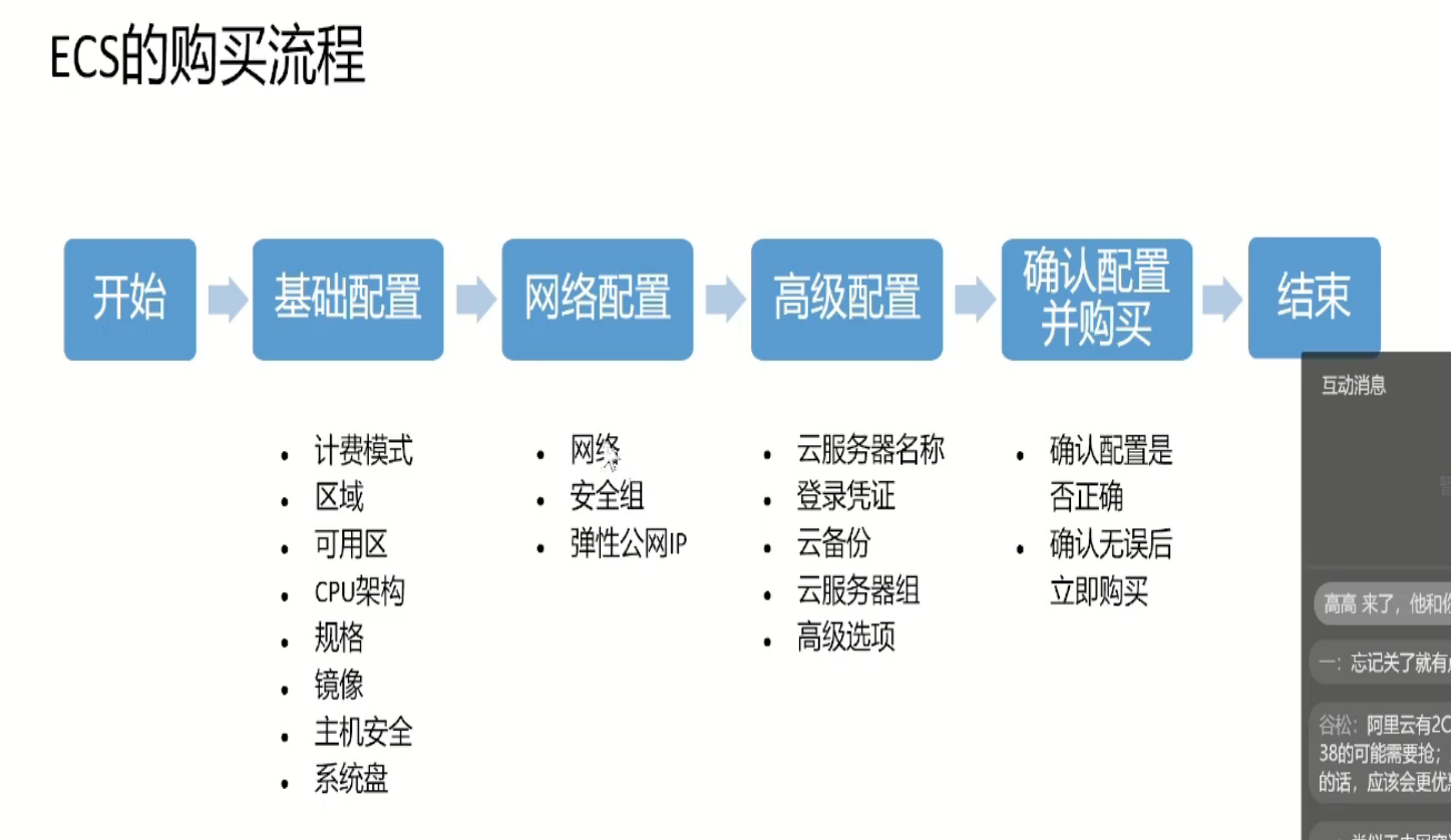 ECS的发放流程:计费模式---区域--可用区--cpu架构--规格--镜像--主机安全--系统盘--vpc--安全组--EIP--主机名--登录凭证--确认信息