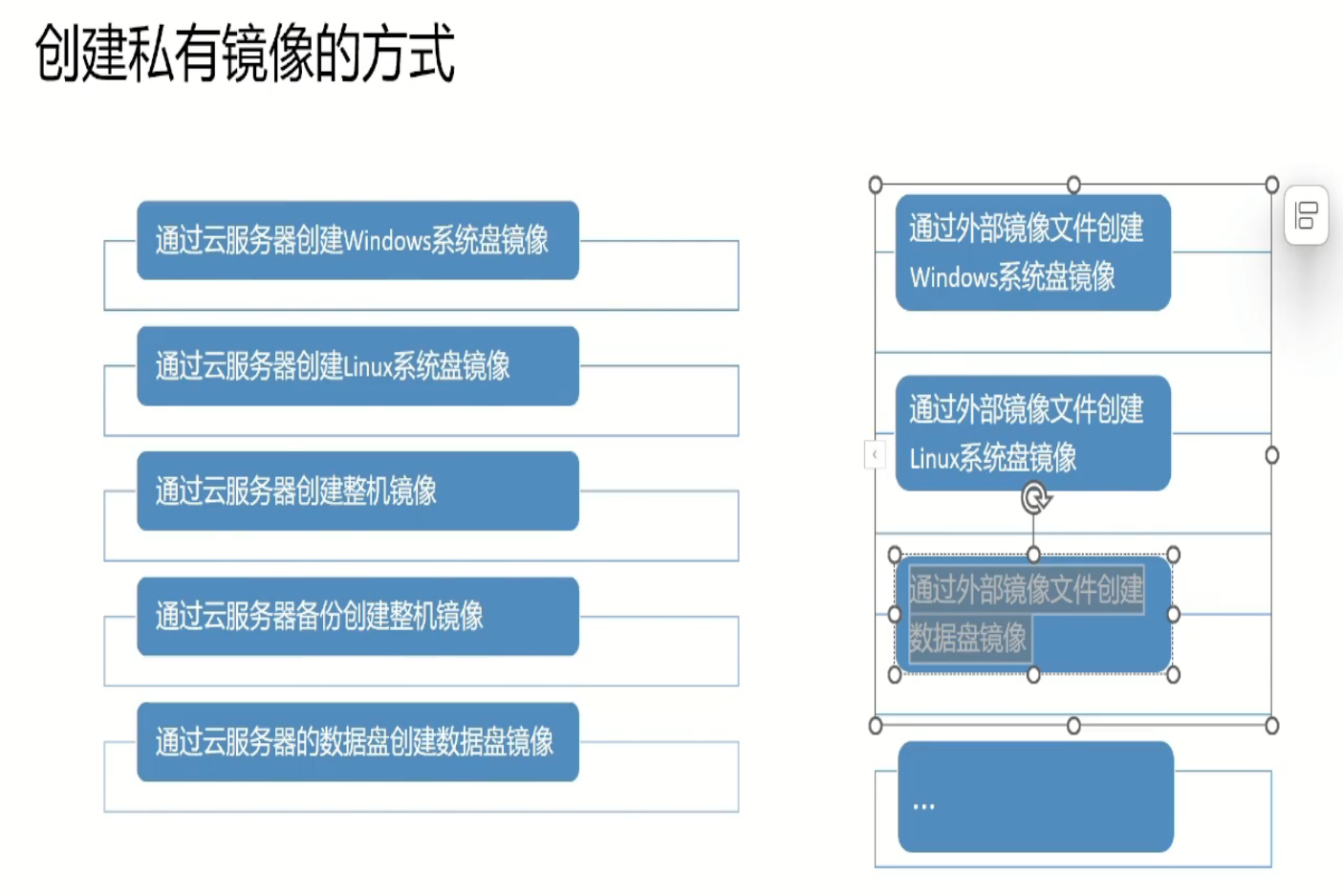 - 由现有运行的弹性云服务器,或由外部导入的方式来创建私有镜像。