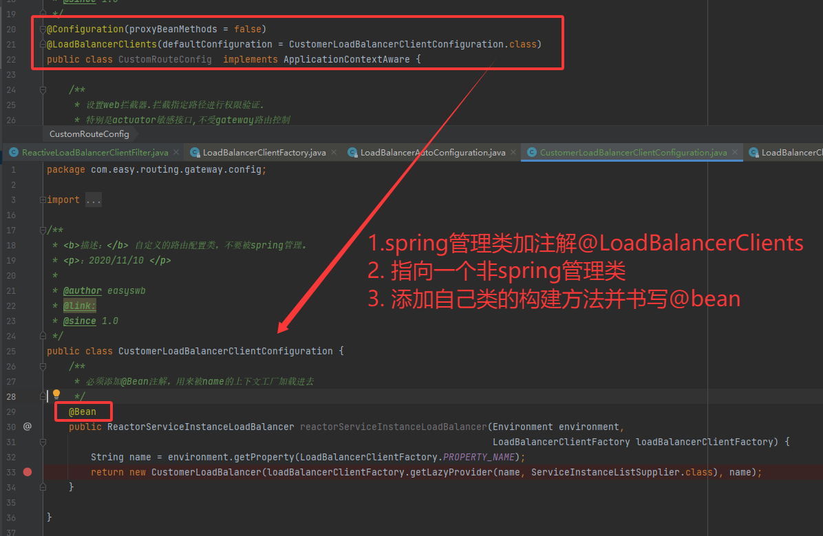 拆分成为两个类。 一个被spring管理的类,添加注解@LoadBalancerClients指向另外一个普通类。