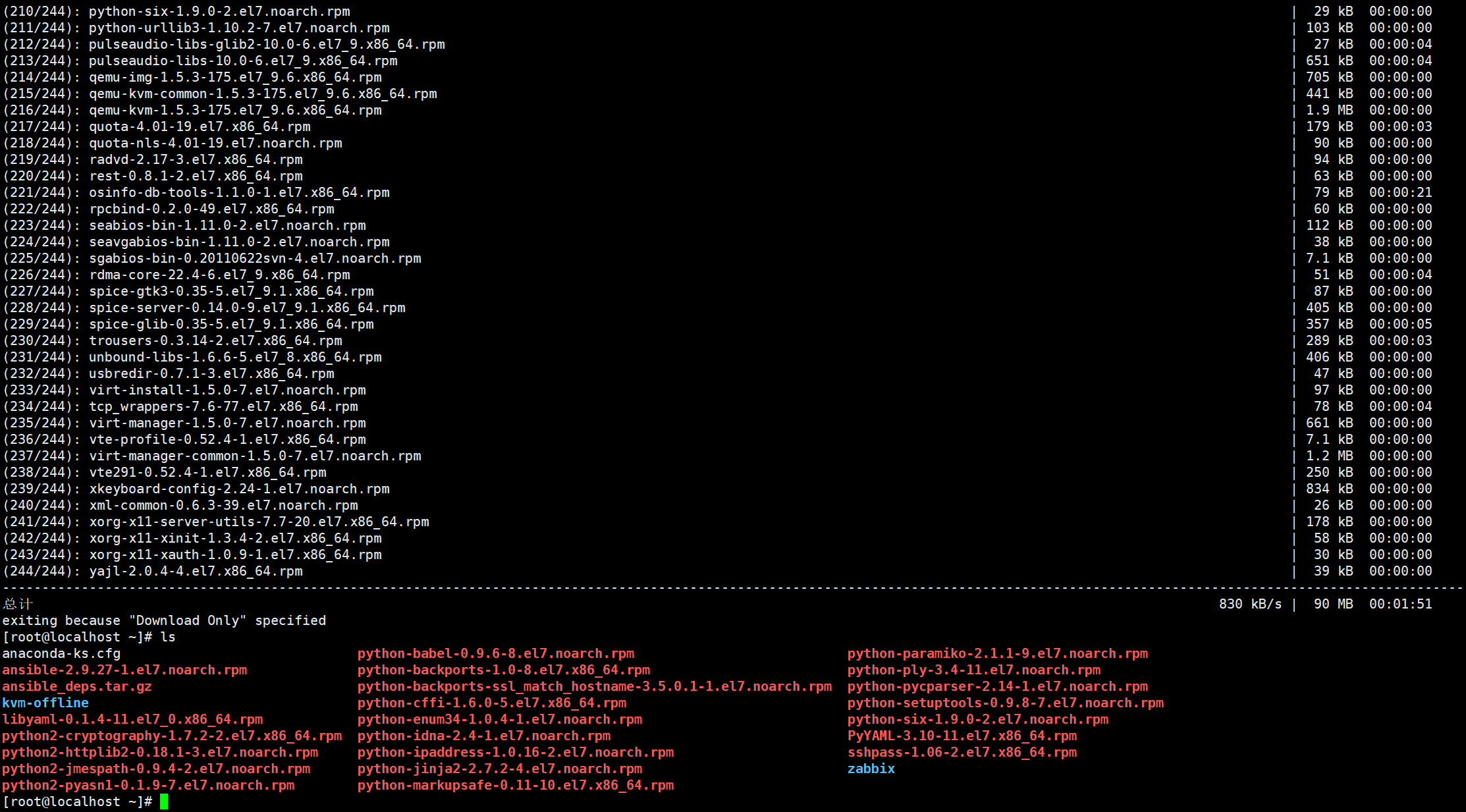 然后会在 /root/kvm-offline/ 目录生成一堆 .rpm 包。