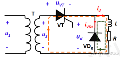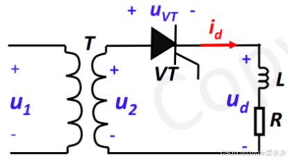 (2)下图所示的是负载为电阻串联电感的单相半波可控整流器原理图。