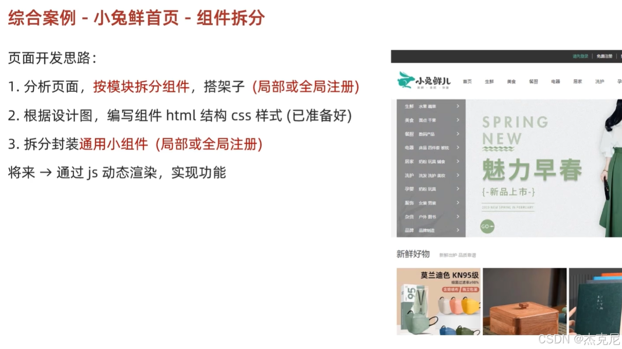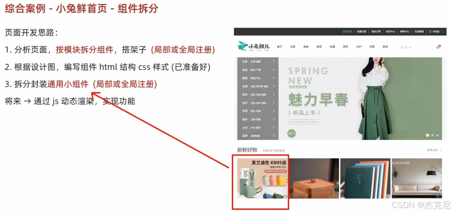 以 “小兔鲜首页” 为例,需将页面按功能模块拆分为组件: