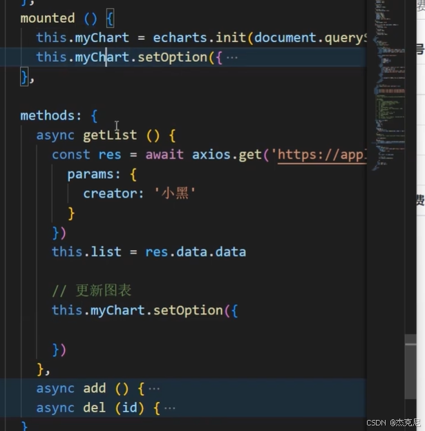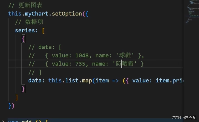 使用this将它们联系起来,另外在methods只需要修改setOption里面的data数据即可,其它的不动是不会消失的,只会覆盖修改的地方(data)