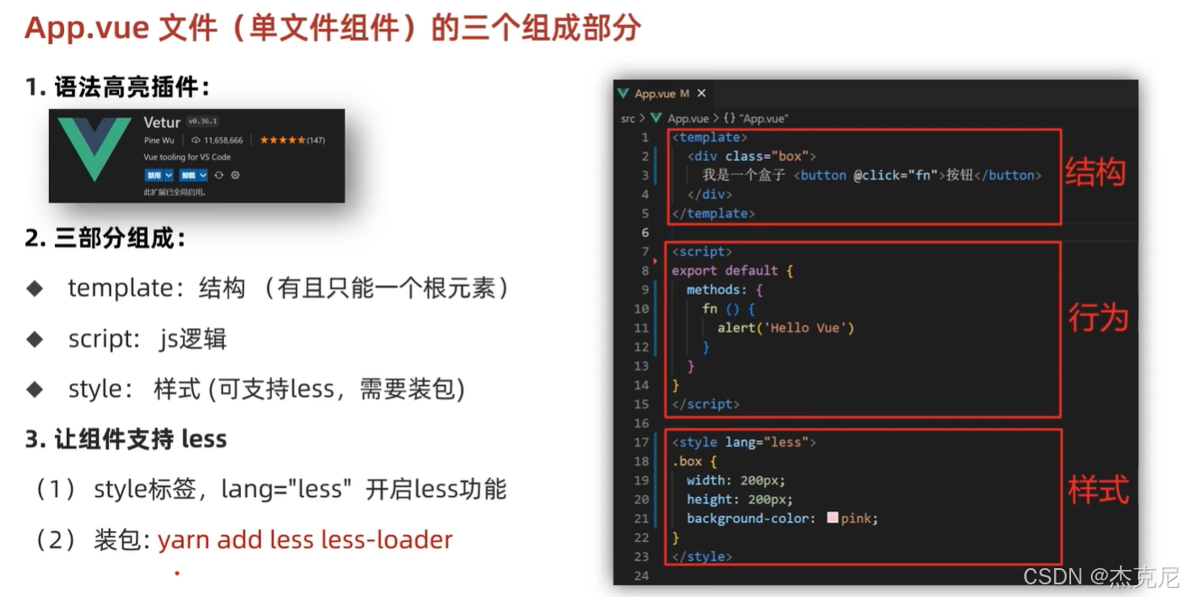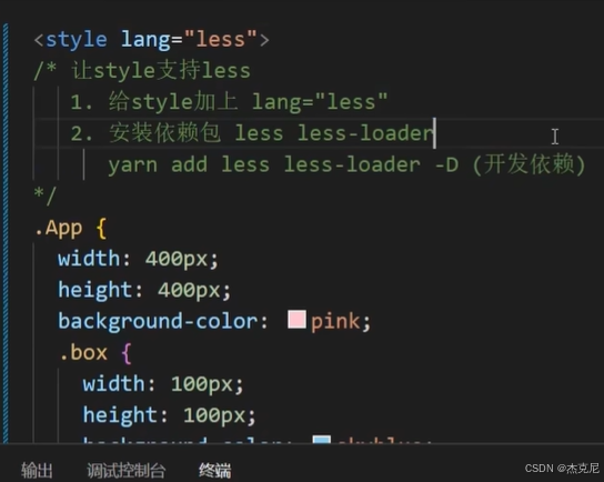 lang="less"告诉 Vue 编译器:这段样式代码不是普通 CSS,需要先通过 Less 编译器处理,再转换为浏览器可识别的 CSS 代码。- 其实就是可以嵌套的格式()