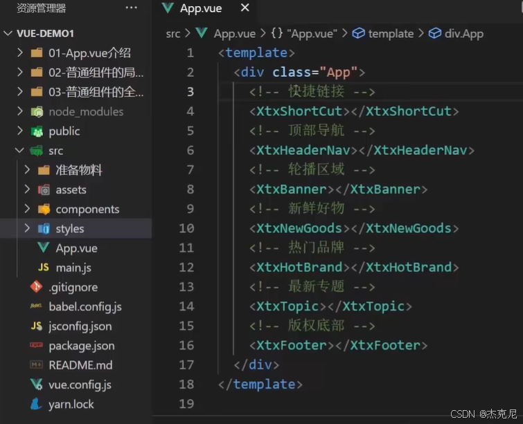 Vue 的单文件组件(.vue) 允许在一个文件中写模板、逻辑、样式,让组件的结构更清晰。以 Header.vue 为例:
