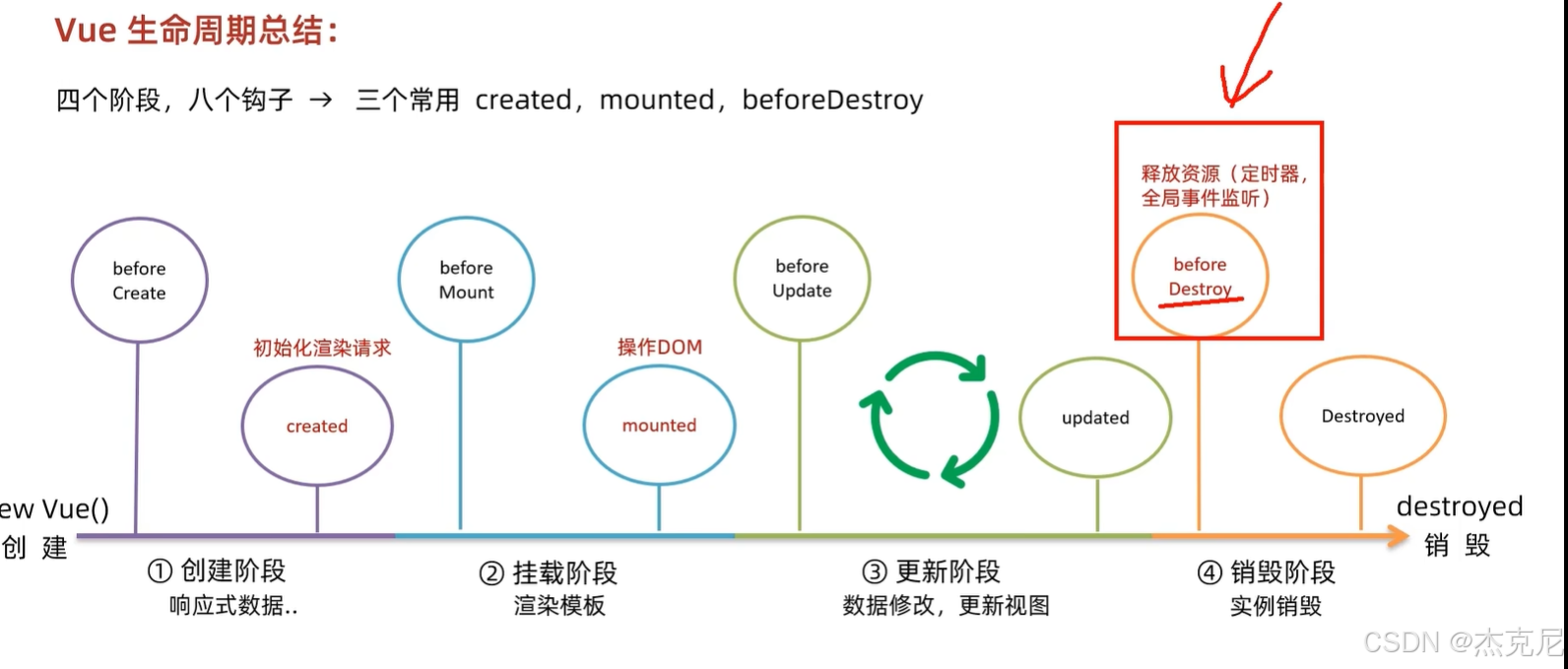 beforeDestroy:实例销毁前调用,可在此清理定时器、解绑事件等。