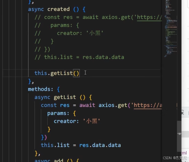 将created中注释的代码封装到method中的getList//因为这个方法通用,增加/删除等涉及修改的都得需要使用