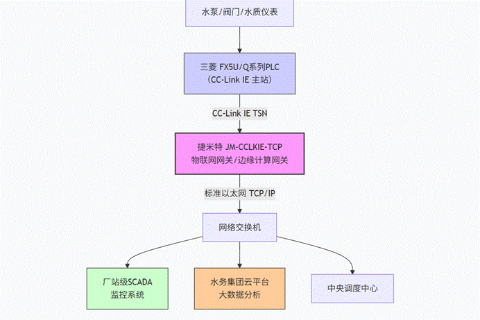 某城市水务集团下属的污水处理厂及多个分布式供水泵站,其自动化控制系统普遍采用三菱FX5U/Q系列PLC作为主控,现场网络为三菱主流的CCLKIE协议。这套系统虽能独立完成工艺控制,但在向“智慧化”升级时遇到了严峻挑战: