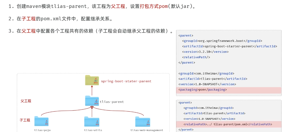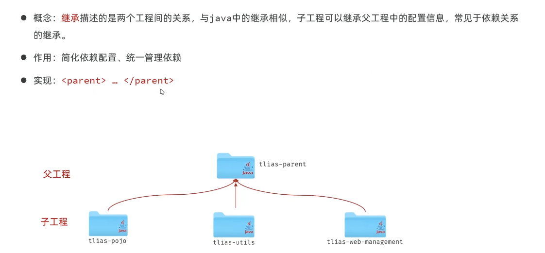 <!--实体类依赖--><dependency><groupId>cc.feitwnd</groupId><artifactId>tlias-pojo</artifactId><version>1.0-SNAPSHOT</version></dependency><!--工具类依赖--><dependency><groupId>cc.feitwnd</groupId><artifactId>tlias-utils</artifactId><version>1.0-SNAPSHOT</version></dependency>继承
