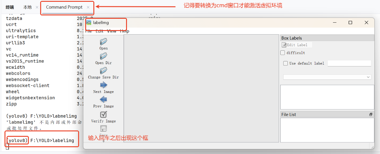 ①在终端使用labelimg进行数据标注(要提前使用pip下载)