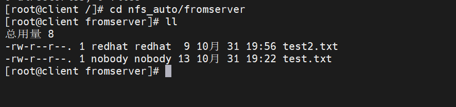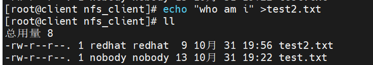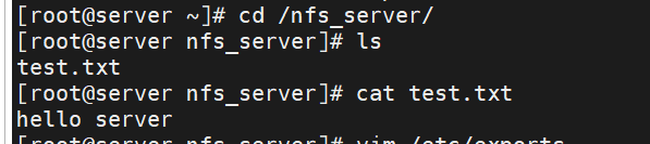 到服务端 /nfs_server 目录下查看是否有 test.txt 文件及内容