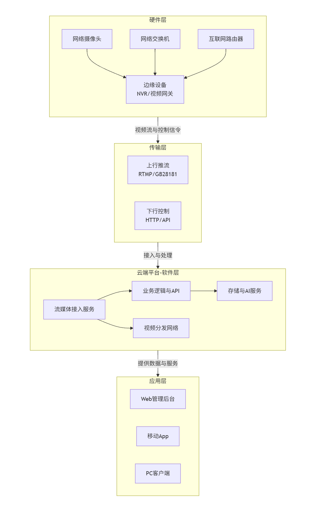 这套架构结合了现代的云计算、微服务和流媒体技术,能够支撑海量摄像头接入、高并发访问和复杂的智能分析需求。