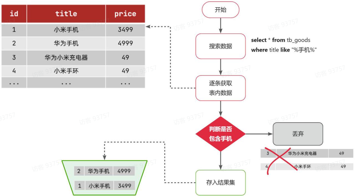 数据库的模糊搜索功能单一,匹配条件非常苛刻,必须恰好包含用户搜索的关键字。而在搜索引擎中,用户输入出现个别错字,或者用拼音搜索、同义词搜索都能正确匹配到数据。