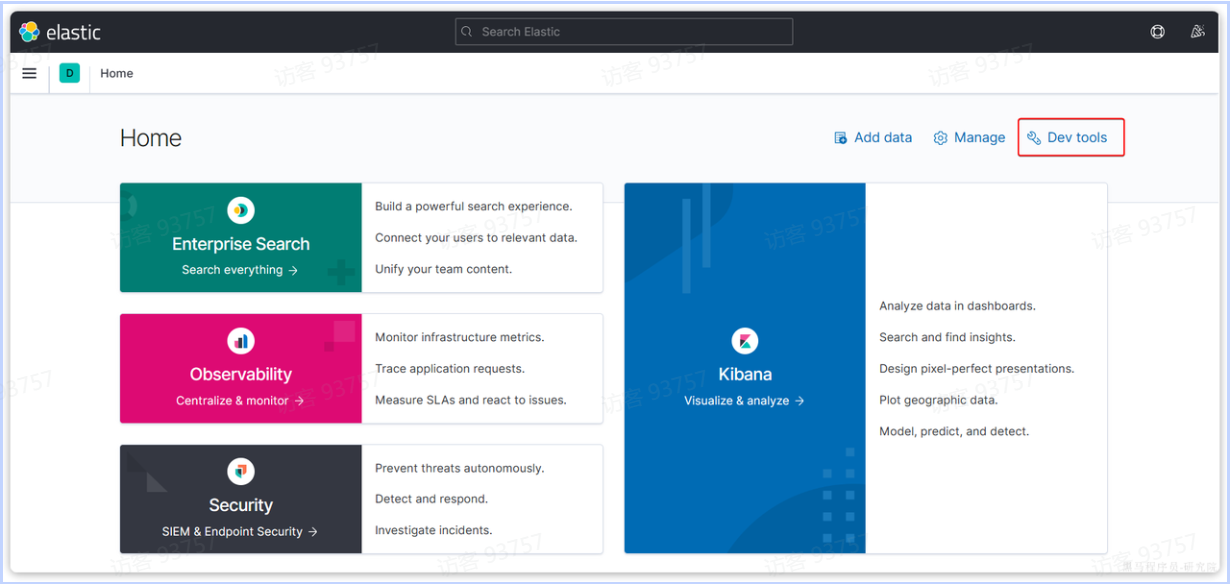它还提供了一个开发控制台(DevTools),在其中对Elasticsearch的Restful的API接口提供了语法提示