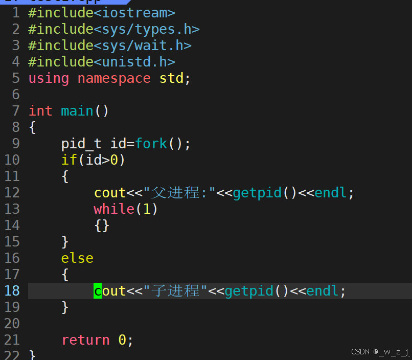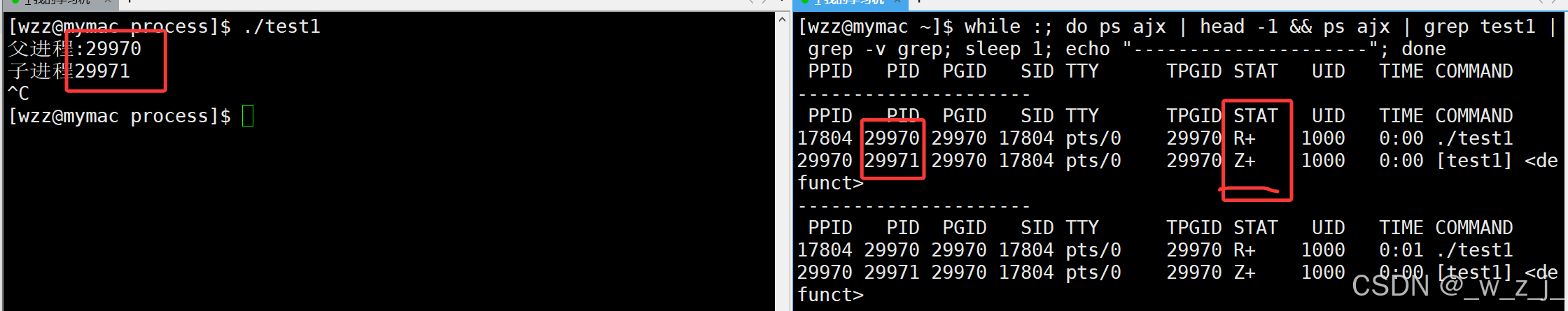 之前在进程状态时说过,僵尸进程不能使用kill或者ctrl+c杀死,只能通过进程等待来杀掉他,进而解决内存泄露问题。先看看僵尸进程是如何产生的:
