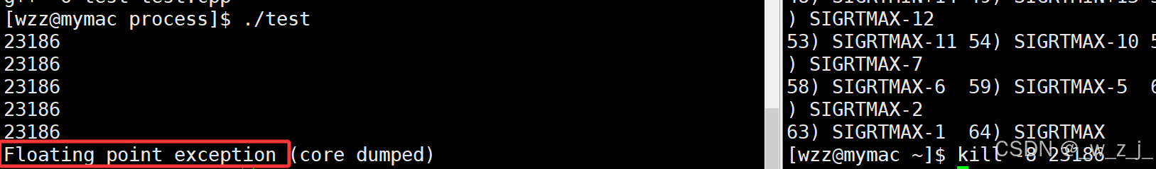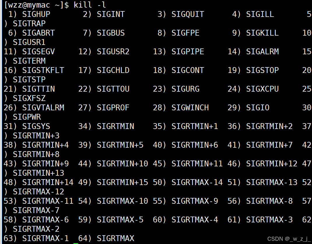 当进程出现异常时,会将发信号给父进程。如下都是异常的信号,可以使用kill指令让指定进程出现对应的异常