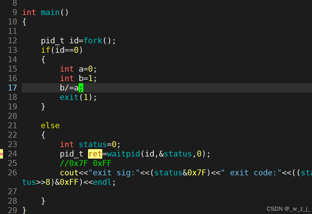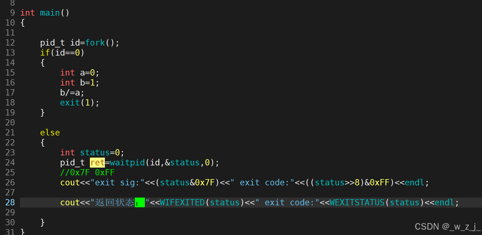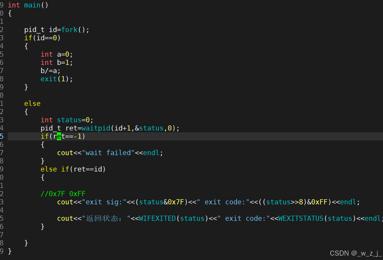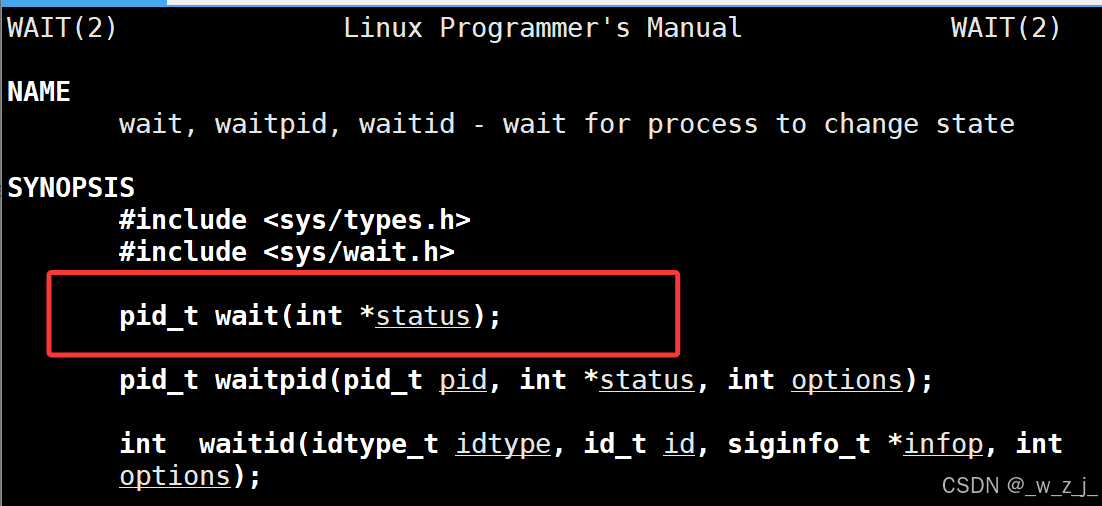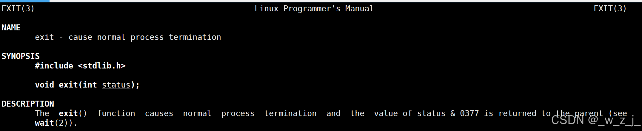 WEXITSTATUS(status): 若WIFEXITED非零,提取子进程退出码。(查看进程的退出码)其实就是(status>>8)&0xFF