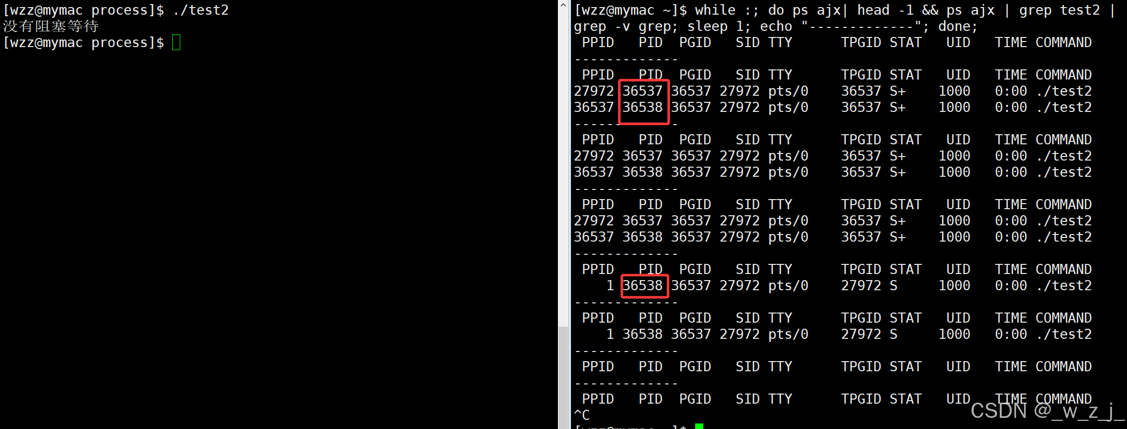 waitpid中第三个参数为WNOHANG时,父进程执行到waitpid时,如果子进程还没有结束,直接退出返回0,不会再阻塞等待子进程;而当其为0时,会阻塞等待子进程。