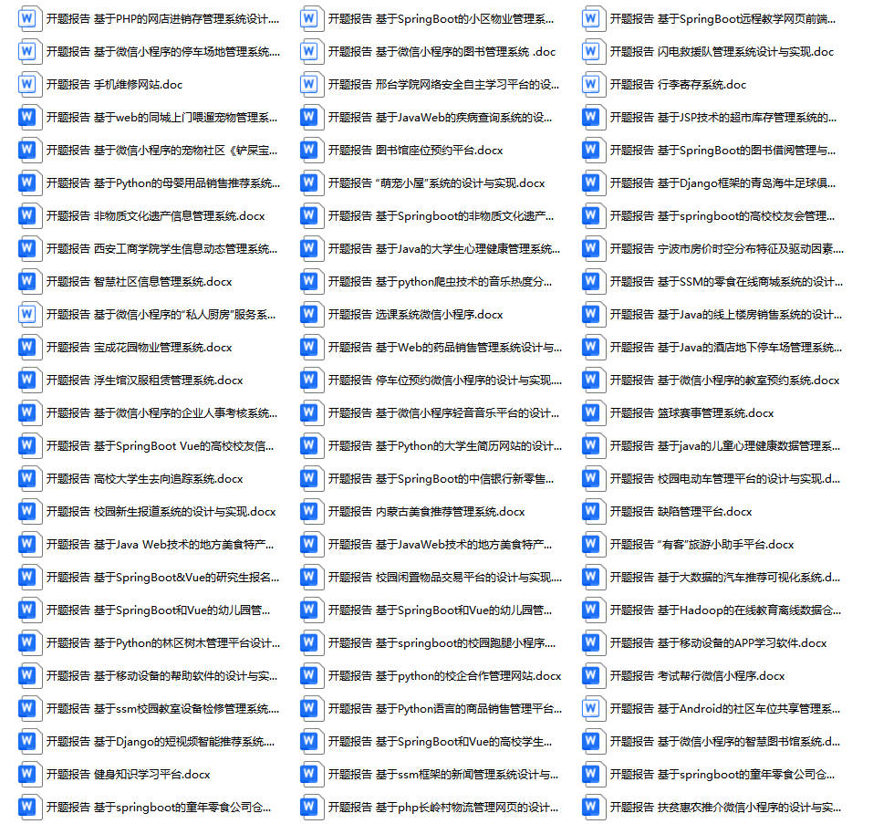 以上是某同学的毕业设计答辩的过程,如果你现在还没有参加答辩,还是开题阶段,已经选好了题目不知道怎么写开题报告,可以下面找找有没有自己符合自己题目的开题报告内容,列表中的开题报告都是往届真实的开题报告,可发送使用或参考。文末或底部来联xi可免费获取