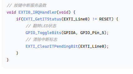 (#) 使用EXTI_Init()选择模式(中断/事件)并配置触发方式(上升沿/下降沿/双边沿)