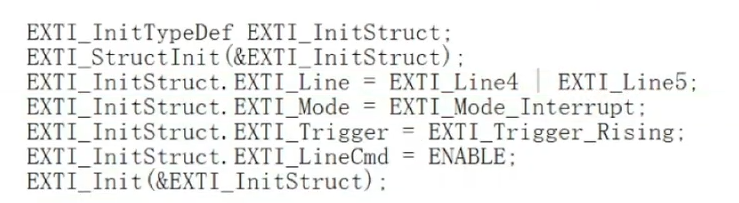 5.使用EXTI_Init()选择模式为中断,并配置触发方式上升沿:
