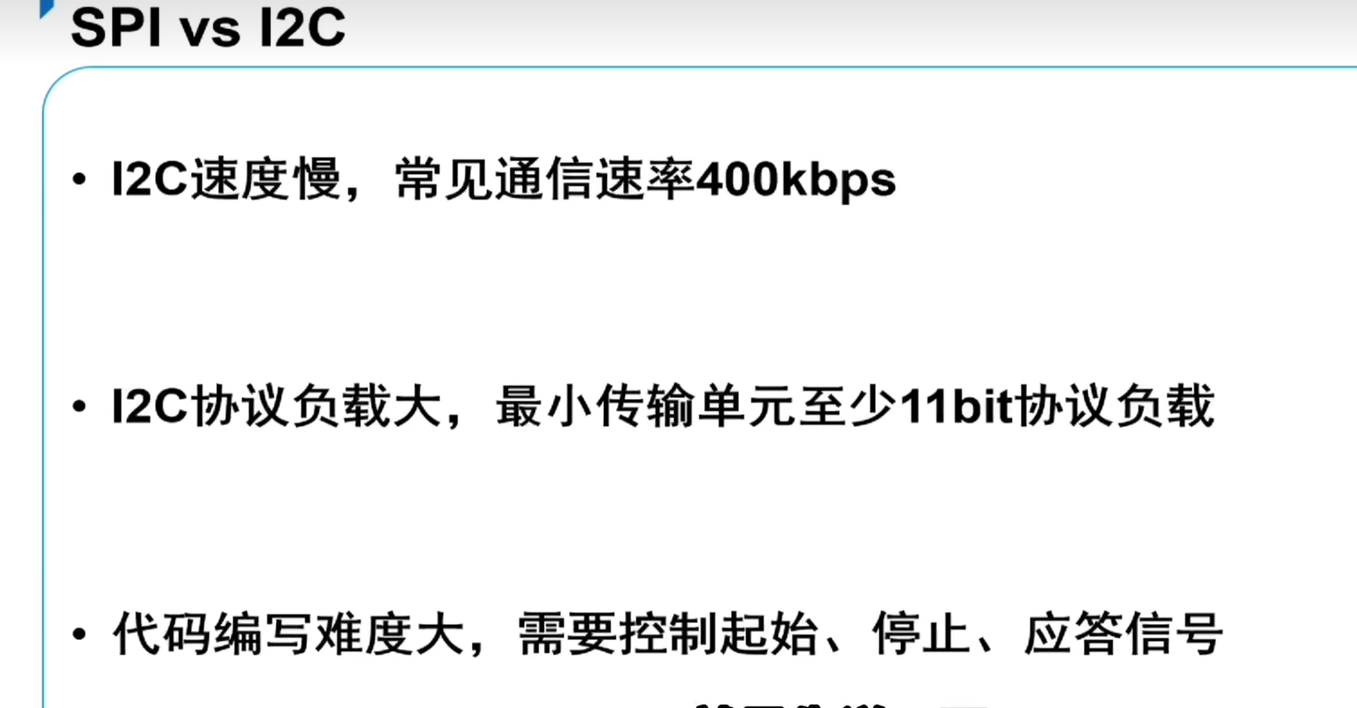 | 典型应用场景 | 需要高速数据传输的场合: • 存储器(Flash, EEPROM) • SD卡 • 传感器(高精度ADC) • 显示屏(OLED, TFT) | 需要连接大量设备且速度要求不高的场合: • 传感器(温度、湿度) • 实时时钟(RTC) • I/O端口扩展器 • EEPROM |